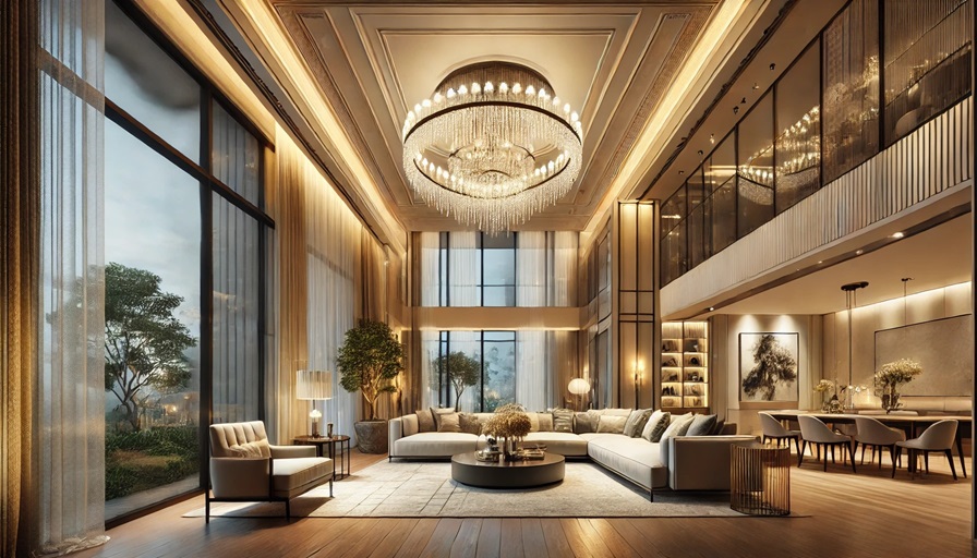 พื้นที่ ดับเบิ้ลโวลุ่ม ไม่เพียงช่วยให้บ้านดูโปร่งโล่ง หรูหรา และเย็นขึ้น แต่ยังเป็นโอกาสที่ดีในการเลือก โคมไฟที่ช่วยเพิ่มมิติ ความสวยงาม และความสะดวกสบาย ให้กับบ้านของคุณ