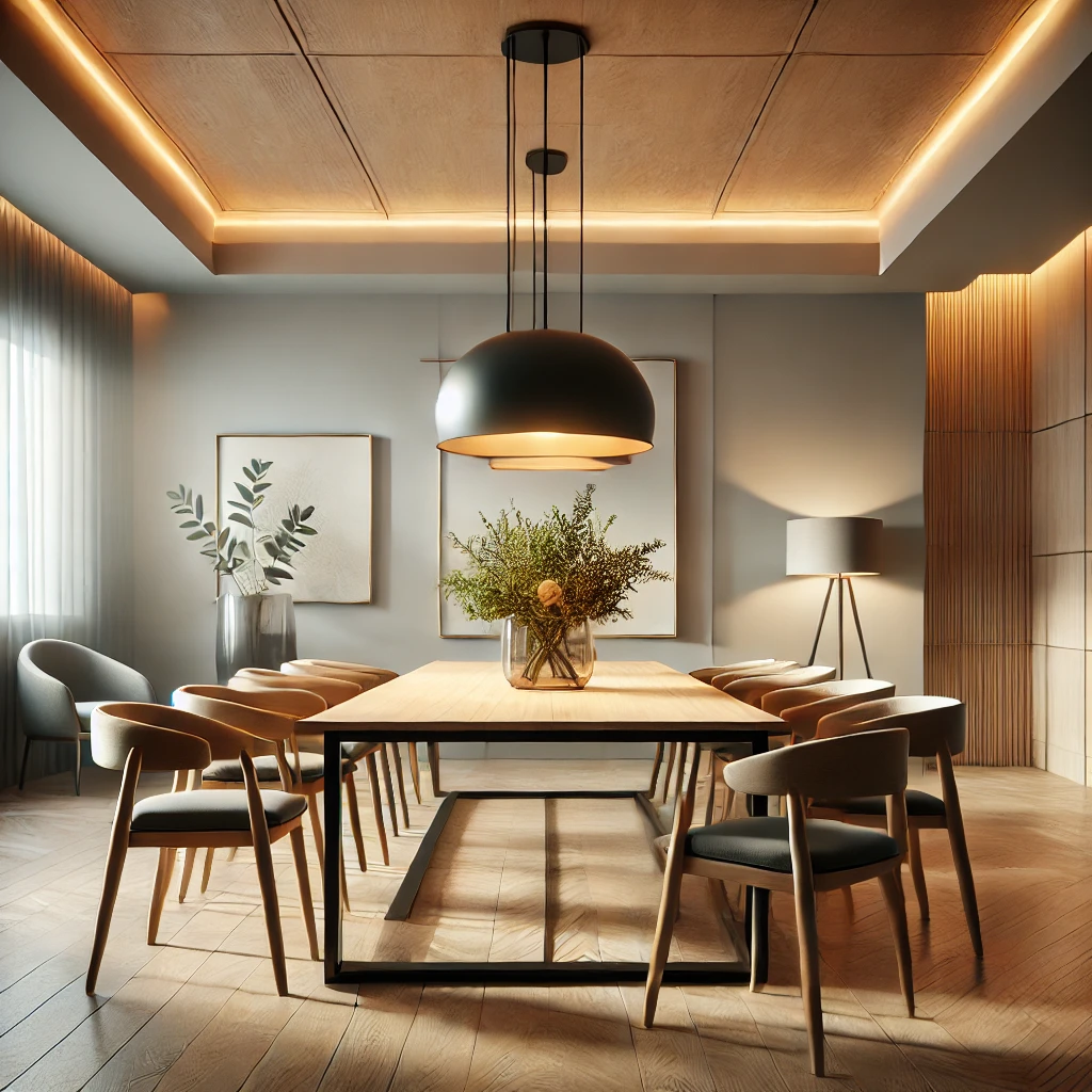 - โคมไฟแขวน (Pendant Light): เหมาะสำหรับโต๊ะยาวหรือโต๊ะทรงกลม ช่วยเพิ่มความโดดเด่น